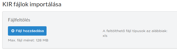 Fontos: A KIR-ből exportált XLS fájlt módosítás és átnevezés nélkül kell feltölteni a rendszerbe, ugyanis az U-Office csak az eredeti letöltött XLS fájlokat tudja beolvasni.