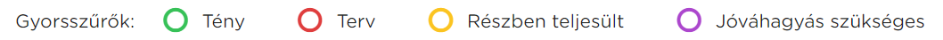 A megjelenő beszerzések listáját átláthatóbbá tehetjük, igényeink szerint személyre szabhatjuk az úgynevezett gyorsszűrők színes karikáira kattintva. Így a Tény, a Terv, a Részben teljesült és a Jóváhagyásra váró állapotú tételek sorára szűkíthető a lista.