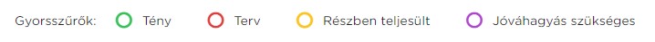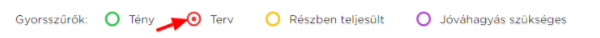 Jelen esetben a terv állapotú tételekre van szűrve (2. ábra). Ennek módja, hogy az adott körre kattint, egyszerre csak egy állapot lehet aktív, ha átkattint másik jelölőre, akkor az előző szűrés eltűnik. A szűrők törlése gomb kihatással van a gyorsszűrőkre is. (1.3 Szűrők törlése)
