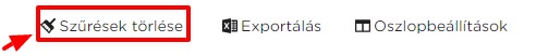 A táblázat felett jobb oldalon található a szűrések törlése menüpont (4. ábra), ha erre kattint, akkor a mind a gyorsszűrő mind az oszlopkeresés mezők alaphelyzetbe kerülnek és a szűrések törlődnek a beírt feltételekkel együtt.